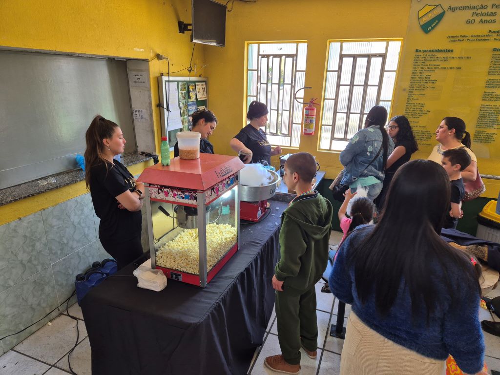 A entidade proporcionou gratuitamente a distribuição de pipoca, refrigerante, crepe e algodão doce, além do evento contar com tobogã inflável, cama elástica e piscina de bolinhas para as crianças.
