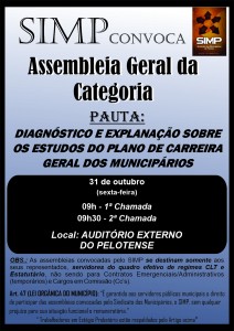 (31/10) ASSEMBLEIA GERAL DA CATEGORIA: DIAGNÓSTICO E EXPLANAÇÃO SOBRE OS ESTUDOS DO PLANO DE CARREIRA GERAL DOS MUNICIPÁRIOS