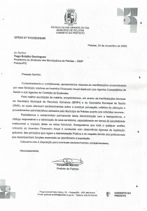 Segue a íntegra do documento do Executivo dirigido ao SIMP.